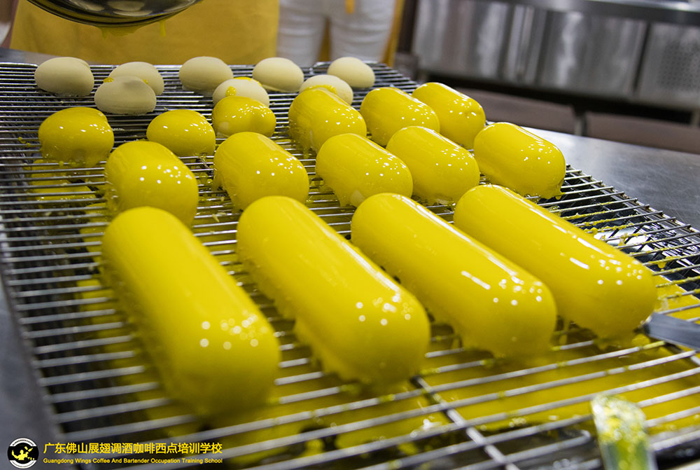 A:表面平整光滑、形狀規則的甜點比較適合淋面。因為在淋面的過程中需要讓淋面很自然地流下來,直到覆蓋到整個甜品表面,如果選擇很不規則的甜點的話,有棱角的地方或者凹凸的部分就會淋不到,做不了一個很完整的蛋糕。