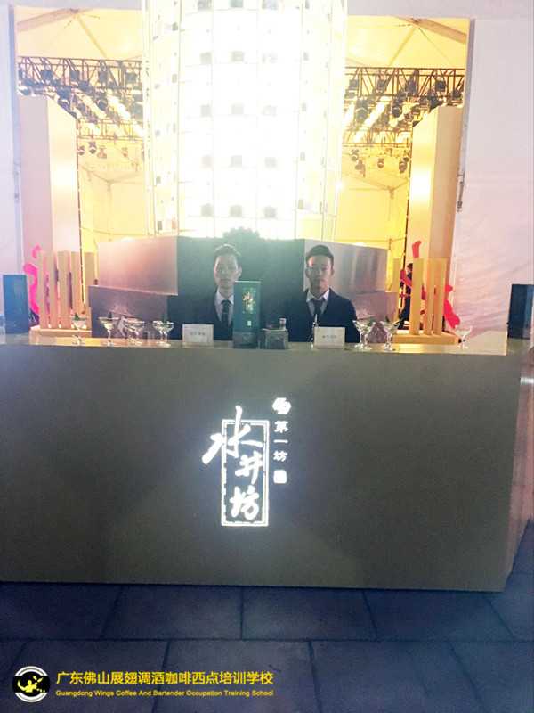 2017年11月19日,水井坊白酒新品發(fā)布“菁翠”邀請(佛山展翅調酒咖啡西點培訓學校)調酒師朱歡洪、王燦杰調酒演出嘉賓!